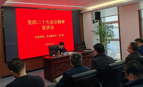 12月8日下午,蚌埠市委常委、常務(wù)副市長(zhǎng)葛銳到集團(tuán)宣講黨的二十大精神。集團(tuán)黨委書記、董事長(zhǎng)陳建功主持會(huì)議,集團(tuán)總部領(lǐng)導(dǎo)班子和中層管理人員,交投集團(tuán)、水投公司、城開公司、建院集團(tuán)、排水公司、糧食系統(tǒng)及汽運(yùn)集團(tuán)領(lǐng)導(dǎo)班子成員參加會(huì)議。