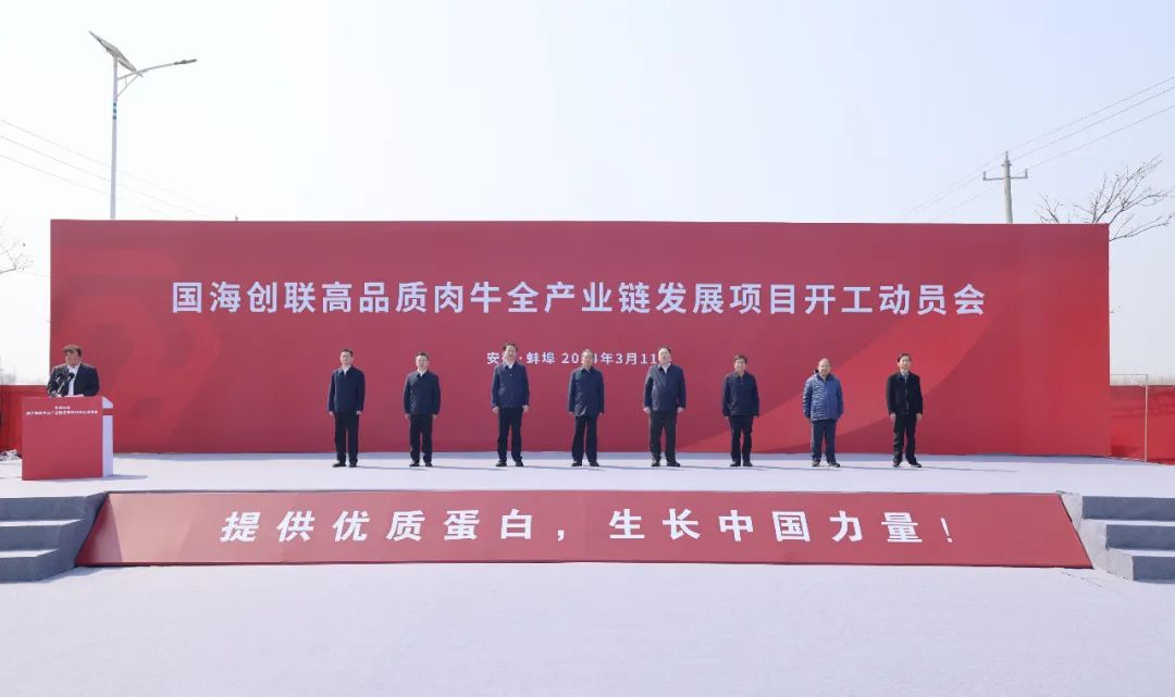 3月11日上午,國海創(chuàng)聯(lián)高品質(zhì)肉牛全產(chǎn)業(yè)鏈發(fā)展項(xiàng)目開工動員會在懷遠(yuǎn)縣舉行。副省長張曙光宣布項(xiàng)目開工,市委書記黃曉武致辭,省政府副秘書長金宗順,省農(nóng)業(yè)農(nóng)村廳廳長汪學(xué)軍,省農(nóng)墾集團(tuán)總經(jīng)理張其廣,省農(nóng)業(yè)農(nóng)村廳副廳長湯洋,國海創(chuàng)聯(lián)實(shí)業(yè)集團(tuán)有限公司董事長閆濤,國家肉牛牦牛產(chǎn)業(yè)技術(shù)體系首席科學(xué)家曹兵海,市領(lǐng)導(dǎo)王慶武、吳永彬、喬樹偉,淮北市、亳州市、宿州市、阜陽市、淮南市、滁州市、六安市政府分管負(fù)責(zé)同志出席。蚌埠國控集團(tuán)黨委書記、董事長陳建功和集團(tuán)黨委副書記、副董事長、總經(jīng)理劉冰參加動員會。