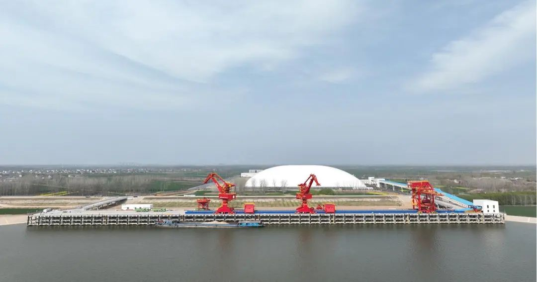 五河縣城南綜合碼頭一期工程位于五河縣頭鋪鎮(zhèn)八岔村,屬蚌埠港五河港區(qū)城南作業(yè)區(qū),淮河左岸;碼頭距離五河縣城約12km,后方距S313省道約3.5km。該項目于2023年3月開工建設(shè),2025年3月完工。已建設(shè)2000萬噸級通用泊位4個,利用泊位岸線330米,設(shè)計年通過能力422.7萬噸;配備相應(yīng)的裝卸設(shè)備,配套建設(shè)道路、堆場、倉庫、供電照明、通信、環(huán)保、給排水、消防等設(shè)施。該碼頭的建成投產(chǎn)對完善五河縣綜合交通運輸體系和港口綜合服務(wù)功能、滿足地方經(jīng)濟發(fā)展需求、促進區(qū)域經(jīng)濟更快更好發(fā)展、減少陸路運輸環(huán)境污染、降低企業(yè)運輸成本、助推地方經(jīng)濟綠色環(huán)保發(fā)展,具有重要的意義。