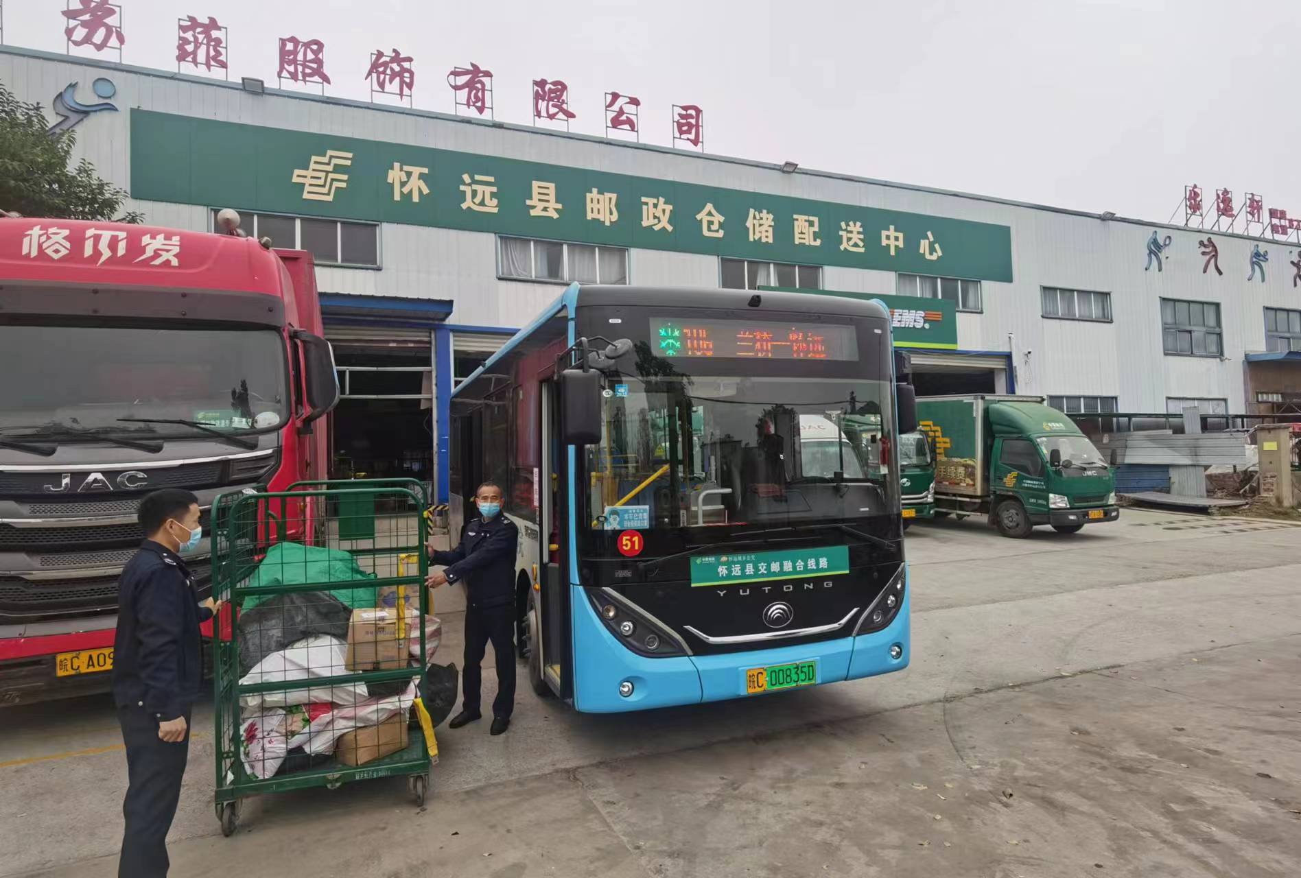 懷遠(yuǎn)城鄉(xiāng)公交“交郵融合”項(xiàng)目,即利用四通八達(dá)城鄉(xiāng)公交網(wǎng)絡(luò),在客流低谷時(shí)段利用車輛富余裝載空間,將郵政快遞交由城鄉(xiāng)公交車輛代運(yùn)代投。該項(xiàng)目有效降低了郵政企業(yè)人員和運(yùn)輸成本,增加了農(nóng)村客運(yùn)車輛效益,彌補(bǔ)了鄉(xiāng)村物流短板,同時(shí)實(shí)現(xiàn)農(nóng)村客運(yùn)穩(wěn)健發(fā)展,是“一點(diǎn)多能、一網(wǎng)多用、功能集約、便利高效”的農(nóng)村運(yùn)輸服務(wù)發(fā)展新模式。目前,懷遠(yuǎn)城鄉(xiāng)公交公司與中國(guó)郵政集團(tuán)懷遠(yuǎn)分公司合作,已開(kāi)通“交郵融合”線路3條,建立蘭橋、龍亢農(nóng)場(chǎng)寄遞共配中心2座,承攬了蘭橋、魏莊、徐圩、龍亢等4個(gè)鄉(xiāng)鎮(zhèn)以及農(nóng)墾集團(tuán)龍亢農(nóng)場(chǎng)場(chǎng)區(qū)的郵政快遞運(yùn)輸業(yè)務(wù),日均運(yùn)輸快遞約2600件,每年通過(guò)公交車輛代運(yùn)快遞95萬(wàn)件。